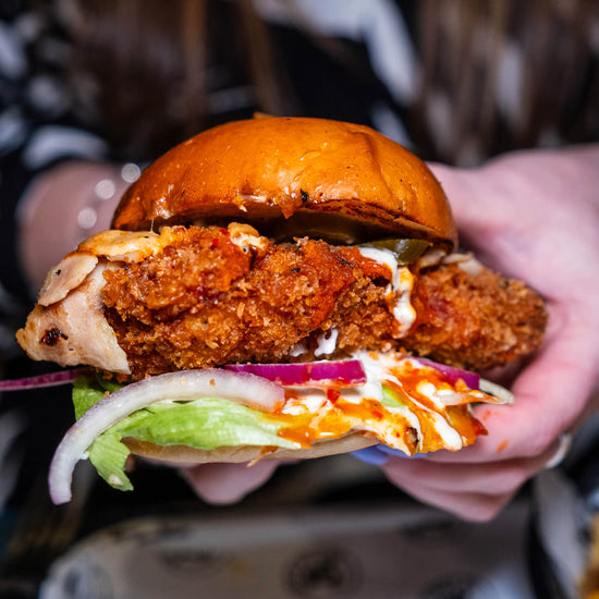We take our bird seriously. Each piece is marinated in buttermilk for 24 hours, then coated in our secret spiced panko and cornflake crumb before being fried to golden glory. Prefer it grilled? We’ve got you. Every bite’s a crunchy, juicy, flavour-packed slap in the taste buds.